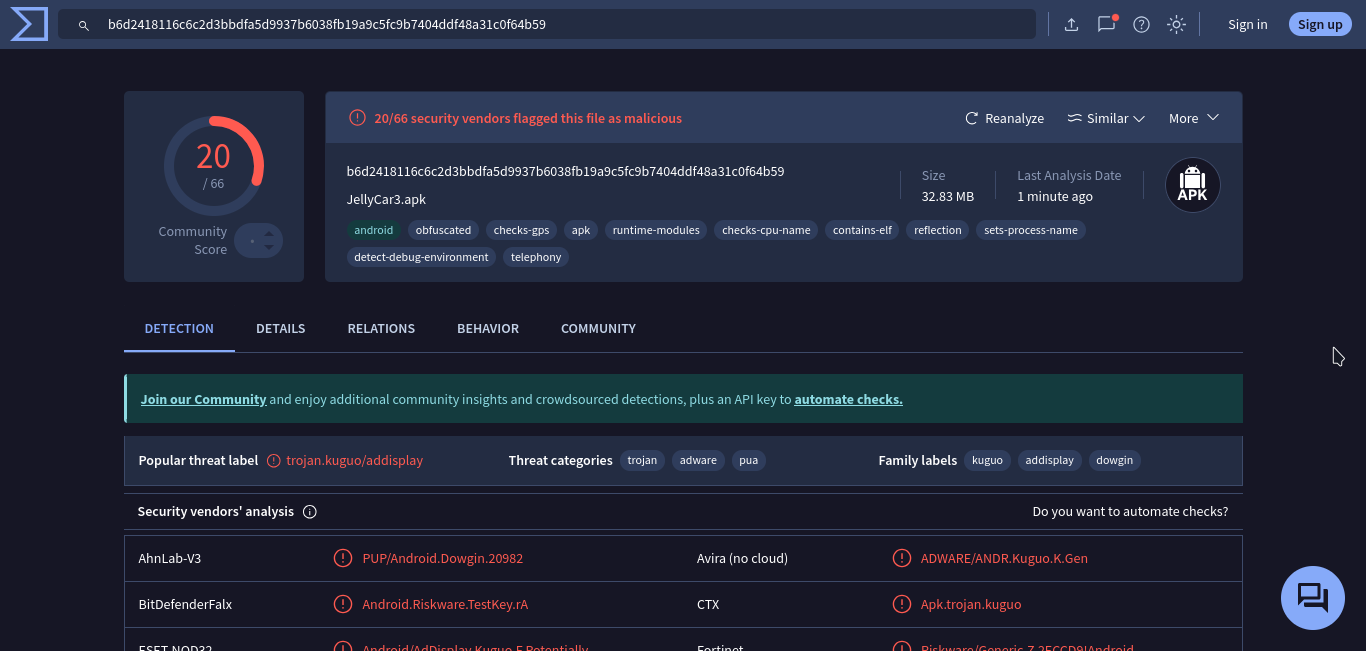 https://www.virustotal.com/gui/file/b6d2418116c6c2d3bbdfa5d9937b6038fb19a9c5fc9b...